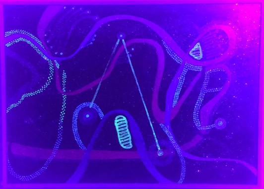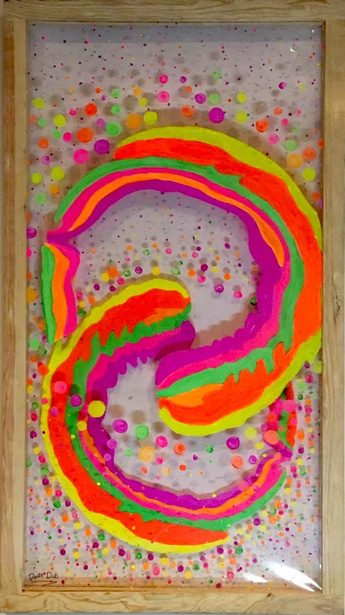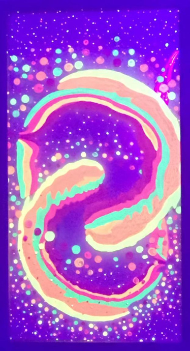 The main factor that characterizes my work is the use of diverse, intense, and vibrant colors. In fact, several works glow in the black light or in the dark.